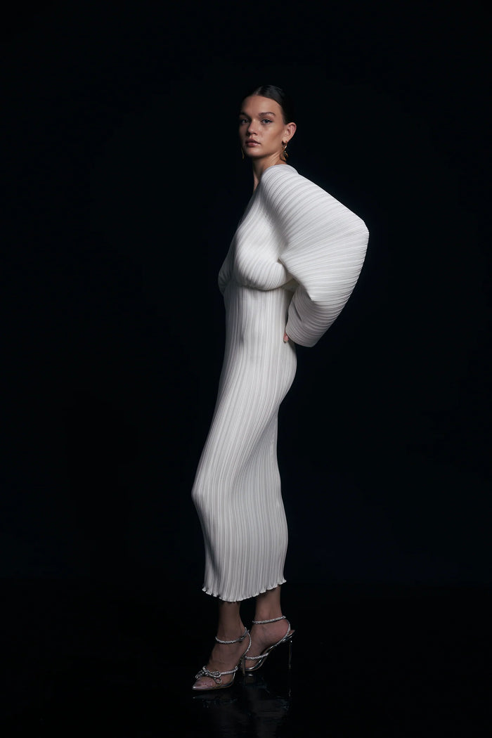 Shona Joy La Lune Frill Cuff Bias Midi Dress
