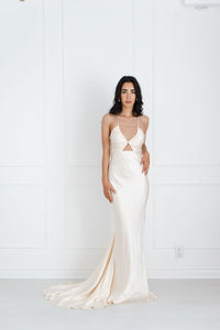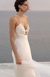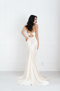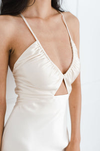 Luminous and ethereal, the La Lune Ruched Bodice Maxi by Shona Joy is made from fully lined silk-touch fabric with a moonlit sheen. A flattering sheath silhouette falls gently into a full-length skirt and train for understated elegance, while a cutout front detail and tie back show off just the right amount of skin.
