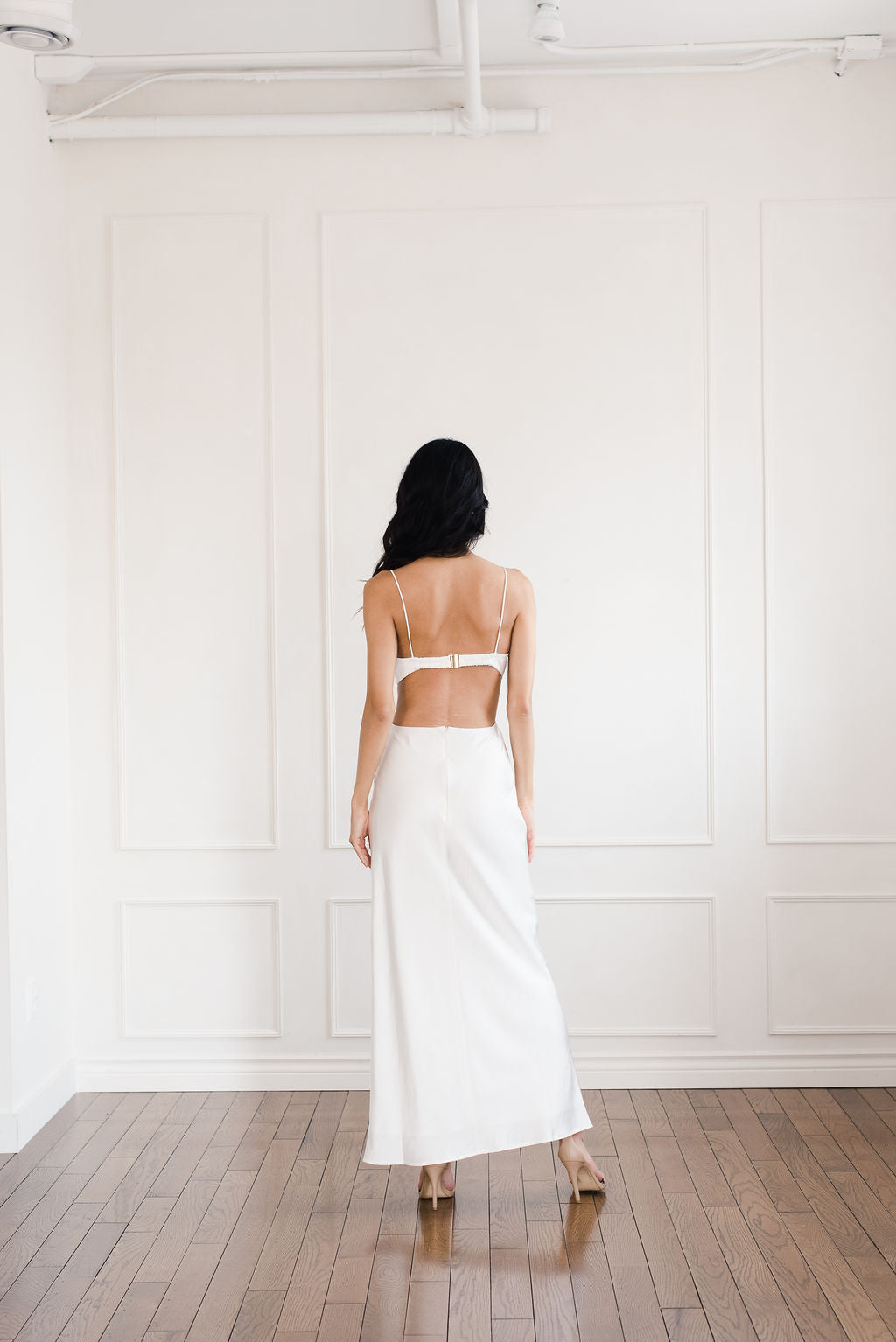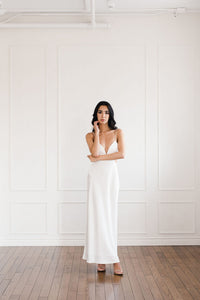 The Jacy Maxi Dress by Significant Other features a sleek bodice with cut-out details, a modern and sophisticated take on the classic slip. Made from lustrous ivory satin, this dress is an easy go-to for a timeless rehearsal dinner, engagement party or reception look.