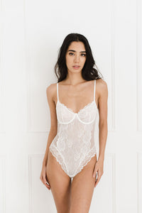 The Elodie lace bodysuit by Kat the Label is truly show-stopping and a lace lover's dream. With soft-to-touch lined white mesh and lace body detailing, this bodysuit has goddess written all over it. Wear it in or out, you decide.